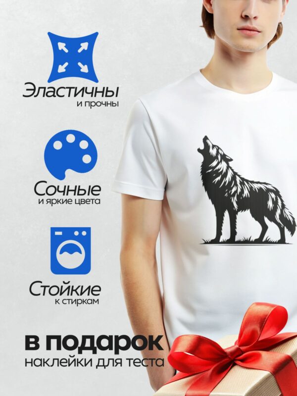 Термонаклейка на одежду DTF / Стилизованный черно-белый волк, воющий на фоне.