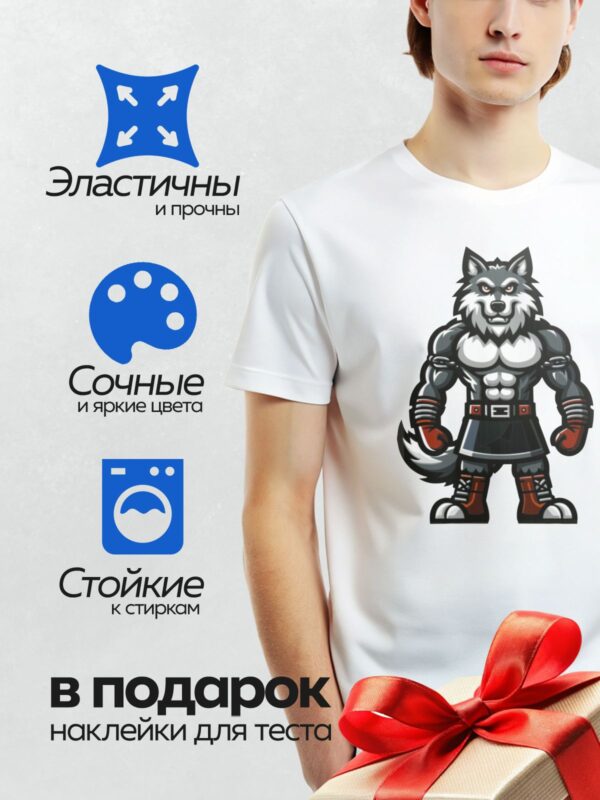 Термонаклейка на одежду DTF / Мускулистый волк в килте и боксерских перчатках.