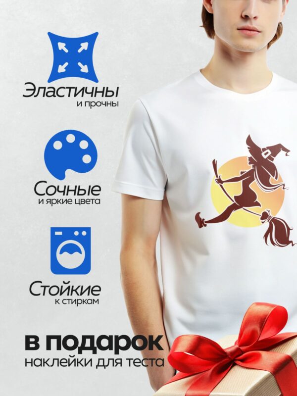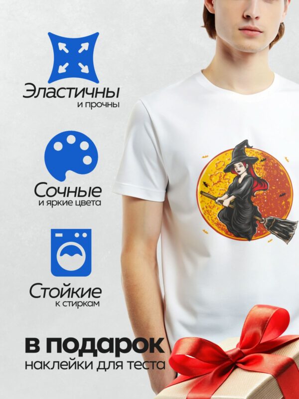 Термонаклейка на одежду DTF / Силуэт ведьмы на метле на фоне луны.