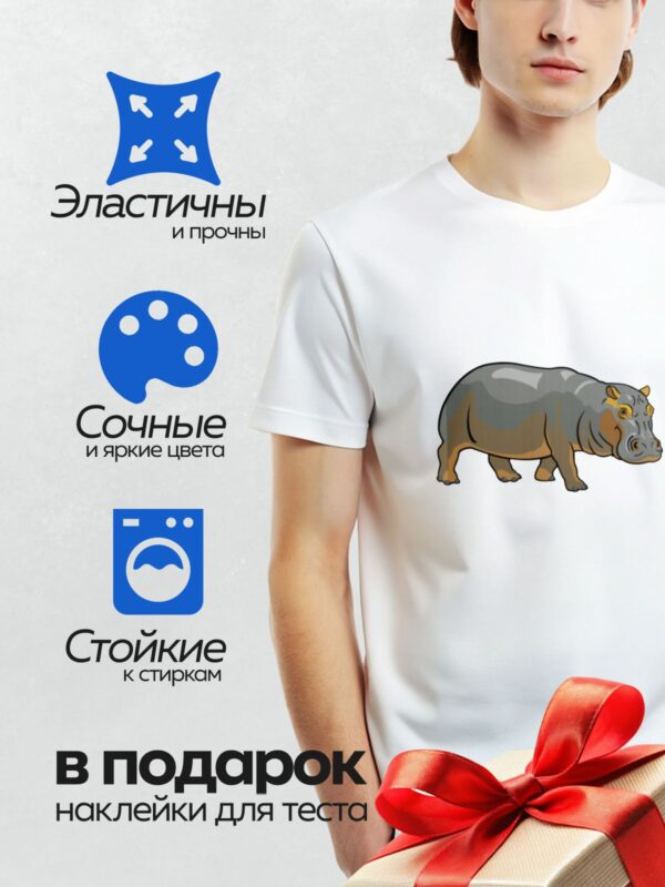Термонаклейка на одежду DTF / Мультяшный бегемот с коричневыми и серыми оттенками.