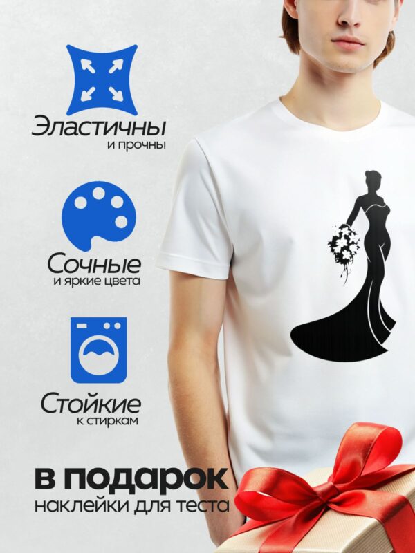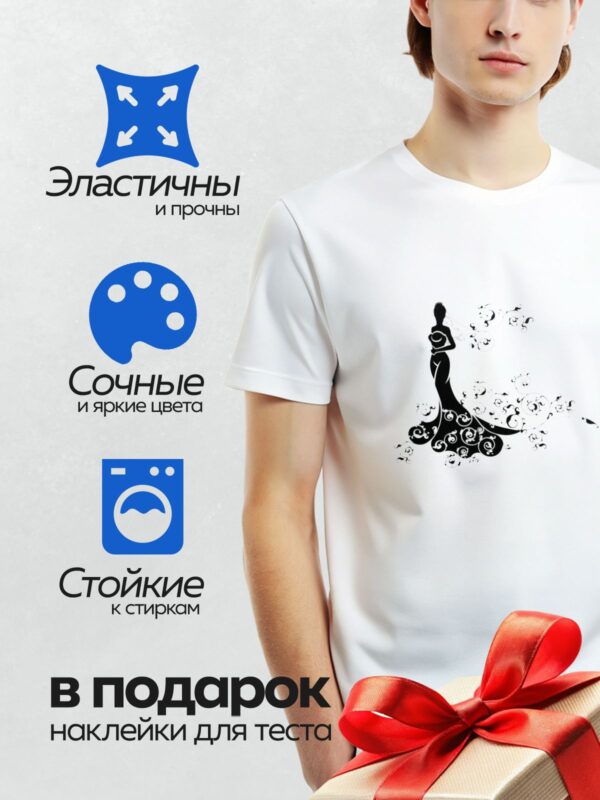 Термонаклейка на одежду DTF / Силуэт невесты в длинном платье с букетом цветов.
