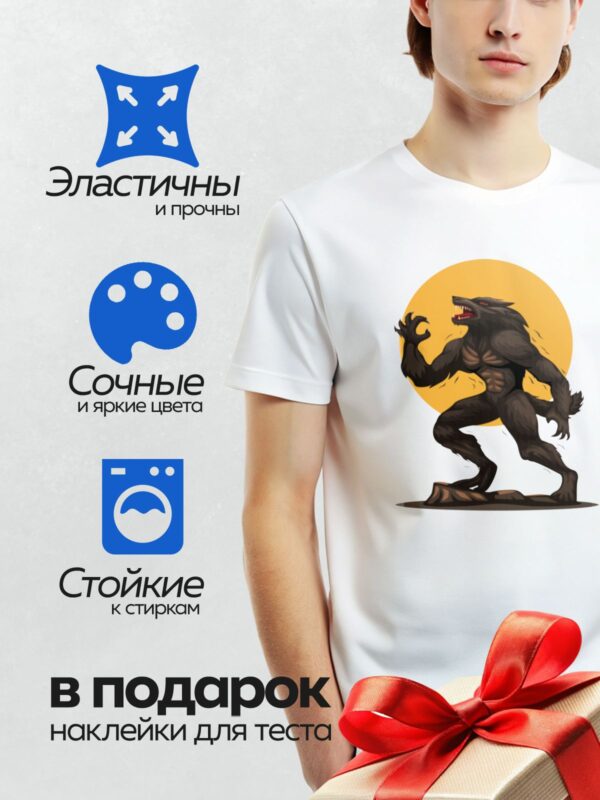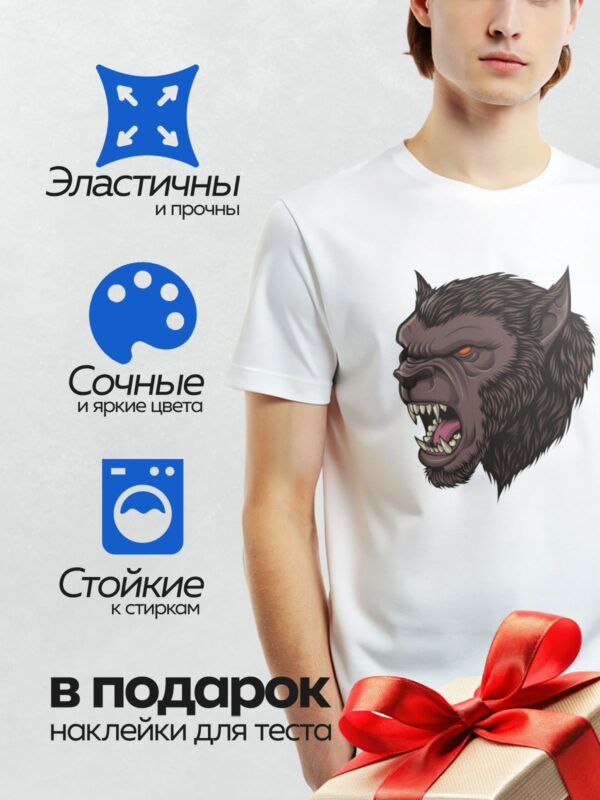 Термонаклейка на одежду DTF / Мускулистый оборотень с острыми клыками, логотип команды.