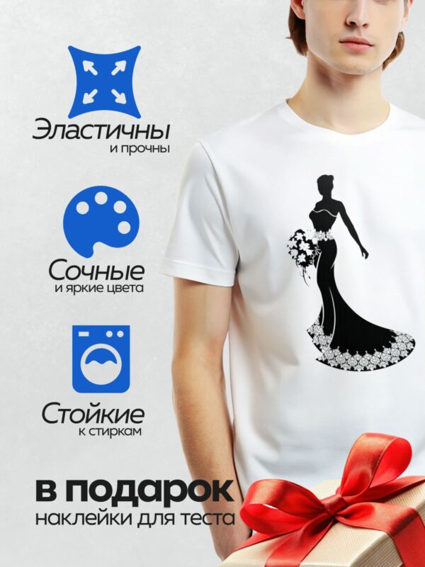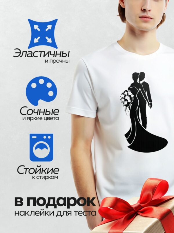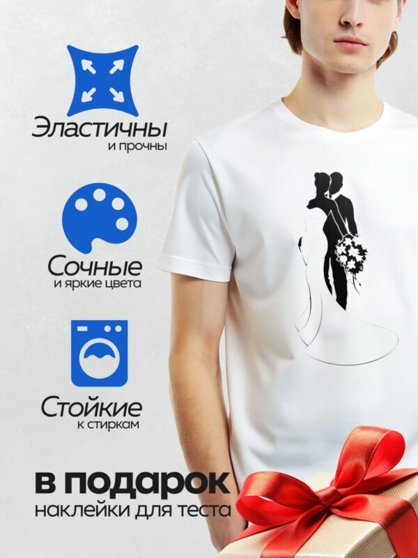 Термонаклейка на одежду DTF / Жених и невеста в свадебных силуэтах.