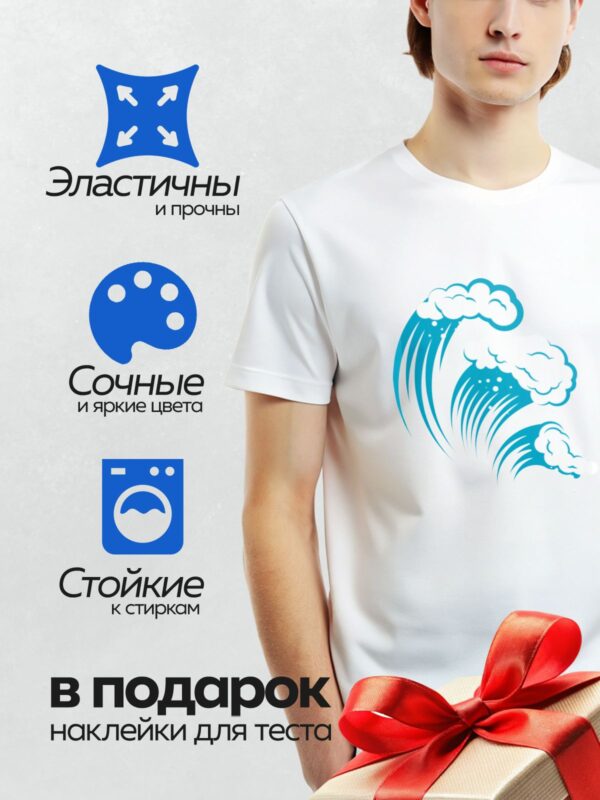 Термонаклейка на одежду DTF / Стилизованная волна с белой пеной на гребне.