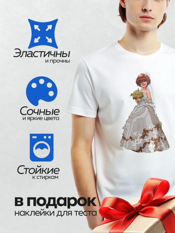 Термонаклейка на одежду DTF / Жених и невеста в элегантных свадебных нарядах.