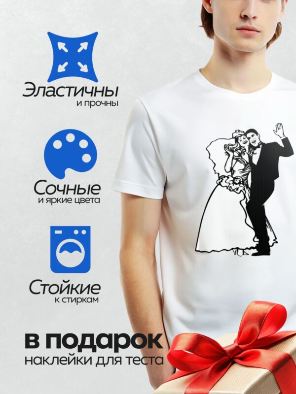 Термонаклейка на одежду DTF / Жених в костюме и невеста в длинном платье.