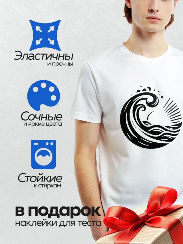 Термонаклейка на одежду DTF / Волна, солнце и минималистичный стиль.
