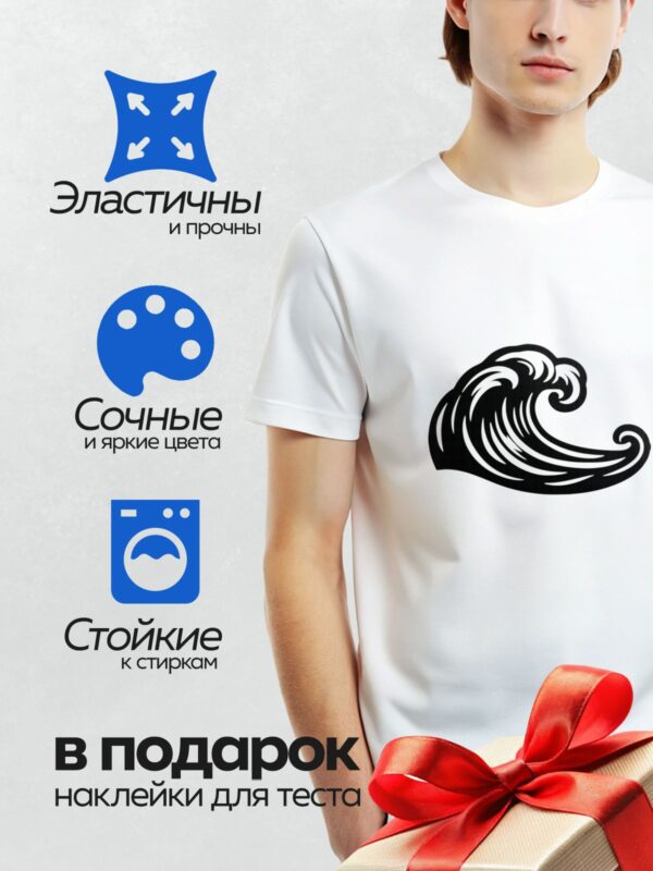 Термонаклейка на одежду DTF / Черно-белая волна в минималистичном стиле.