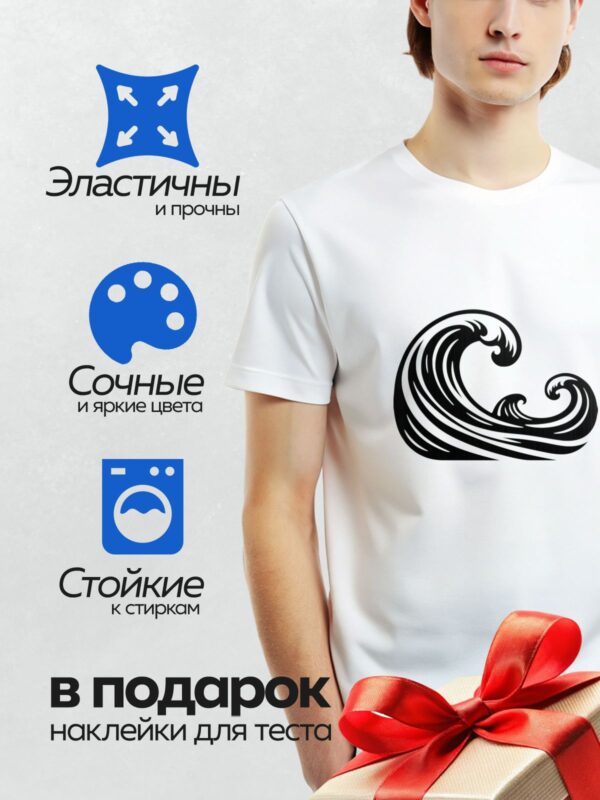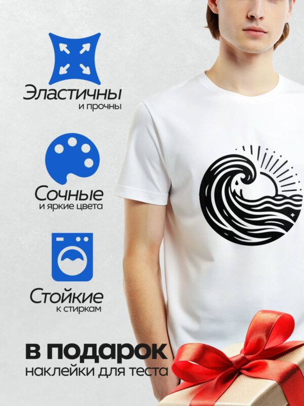 Термонаклейка на одежду DTF / Черно-белая волна, солнце, капля воды.