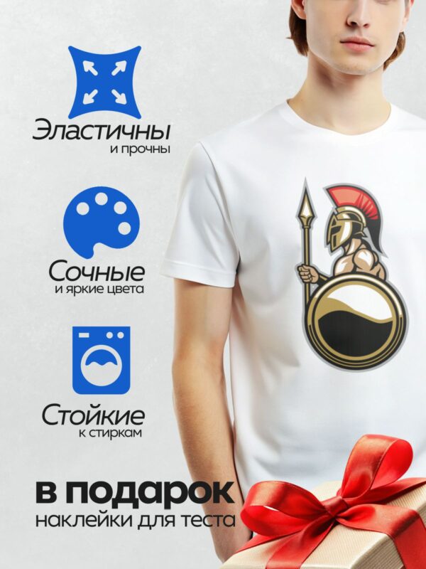 Термонаклейка на одежду DTF / Спартанский воин с красным гребнем, копьём и щитом.
