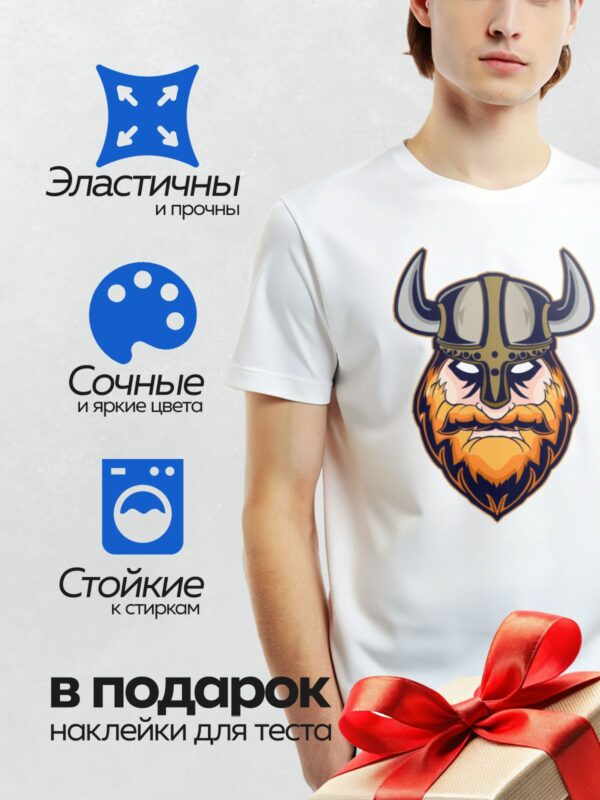 Термонаклейка на одежду DTF / Мультяшный викинг с топором и шлемом с рогами.