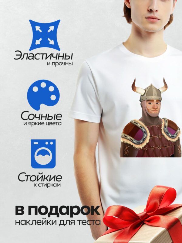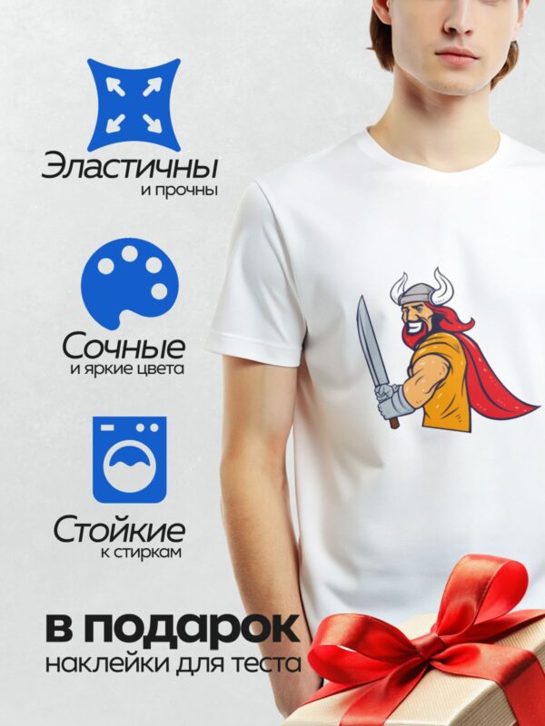 Термонаклейка на одежду DTF / Мультяшный викинг с топором и красным платком.