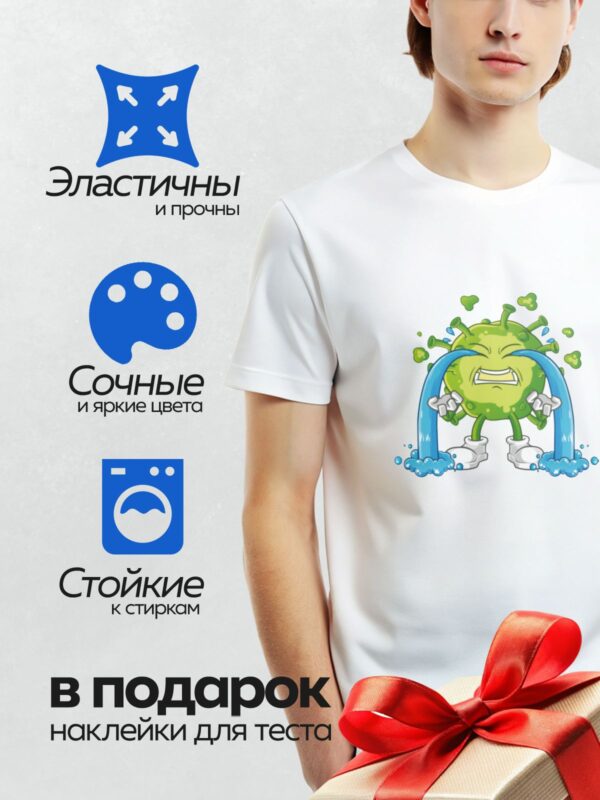 Термонаклейка на одежду DTF / Мультяшный вирус в медицинской маске.