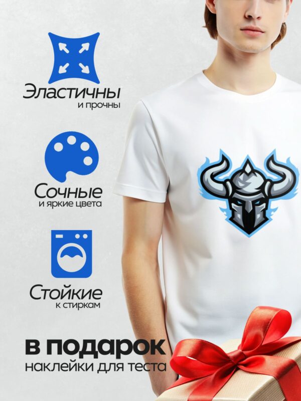 Термонаклейка на одежду DTF / Череп викинга в шлеме с топорами и узором.