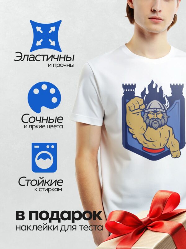 Термонаклейка на одежду DTF / Мускулистый викинг в шлеме с поднятым кулаком.