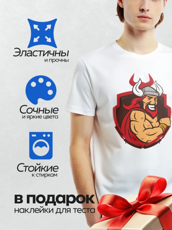 Термонаклейка на одежду DTF / Мускулистый викинг в шлеме с рогами и боксерских перчатках.