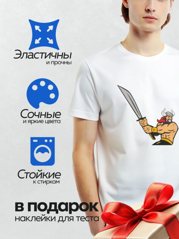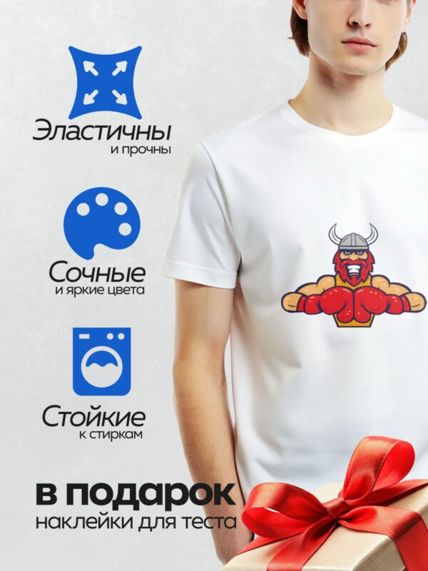 Термонаклейка на одежду DTF / Мускулистый викинг с топором и шлемом с рогами.