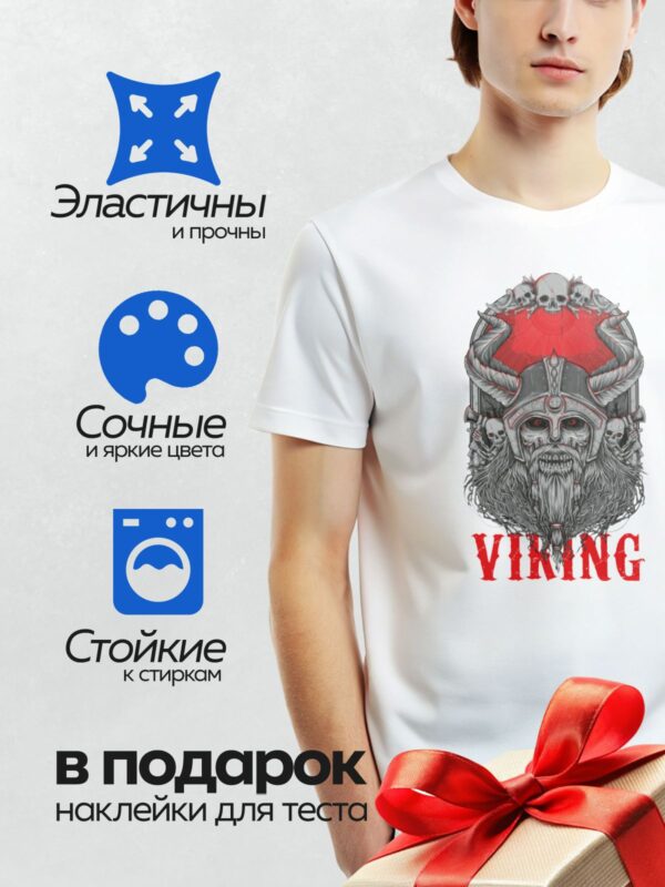 Термонаклейка на одежду DTF / Викинг с топором и надписью “VIKINGS”.