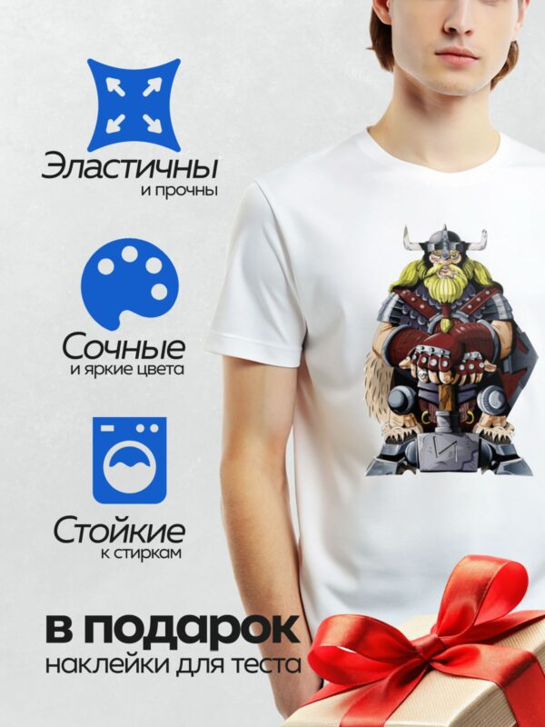 Термонаклейка на одежду DTF / Викинг с массивным топором, в рогатом шлеме.