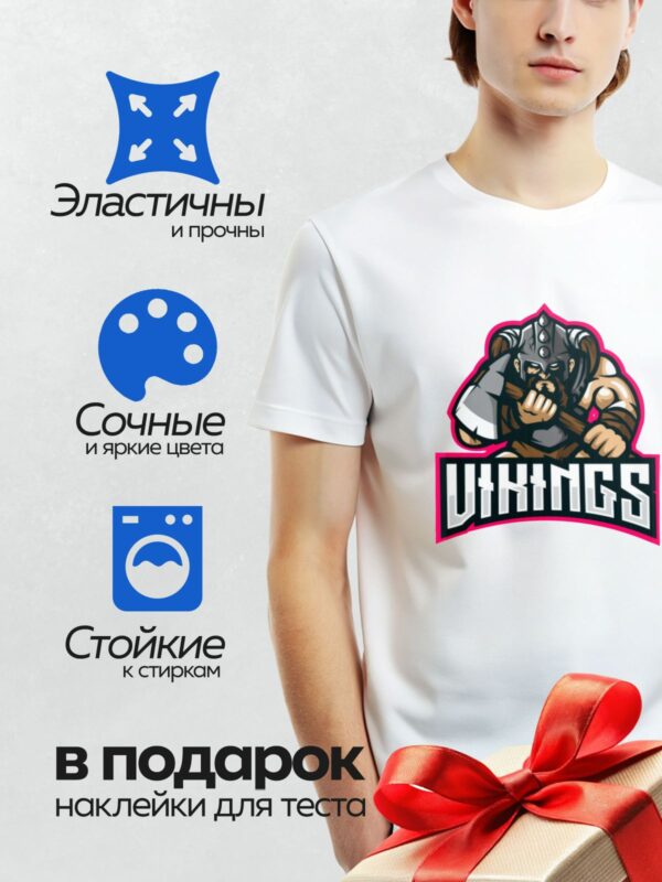 Термонаклейка на одежду DTF / Логотип с викингом в шлеме и надписью “VIKINGS”.