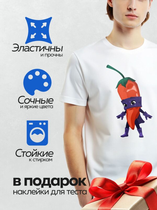 Термонаклейка на одежду DTF / Мультяшный перец чили в костюме супергероя с плащом и маской.
