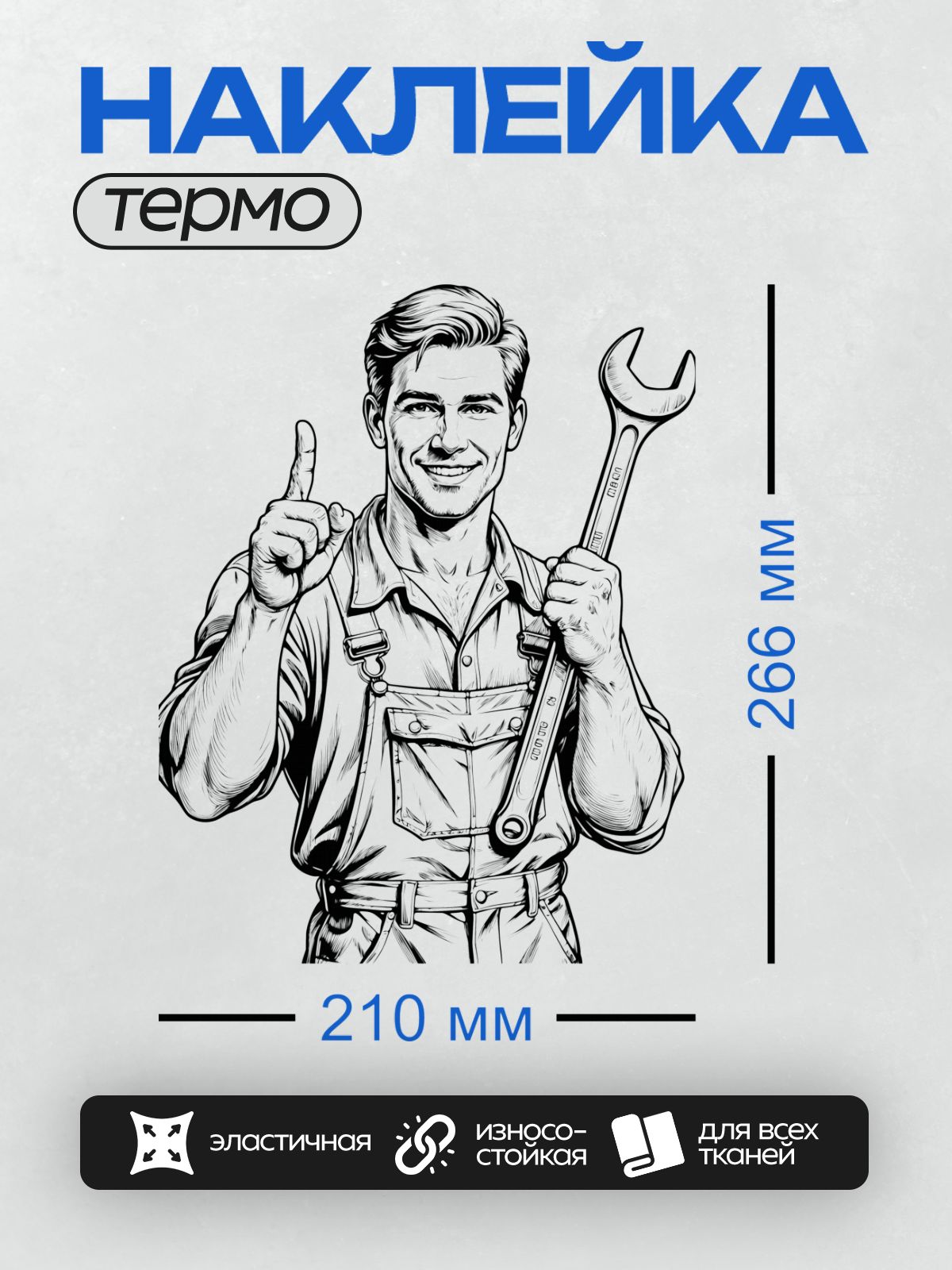 Термонаклейка на одежду DTF / Автомеханик с гаечным ключом, уверенный взгляд.