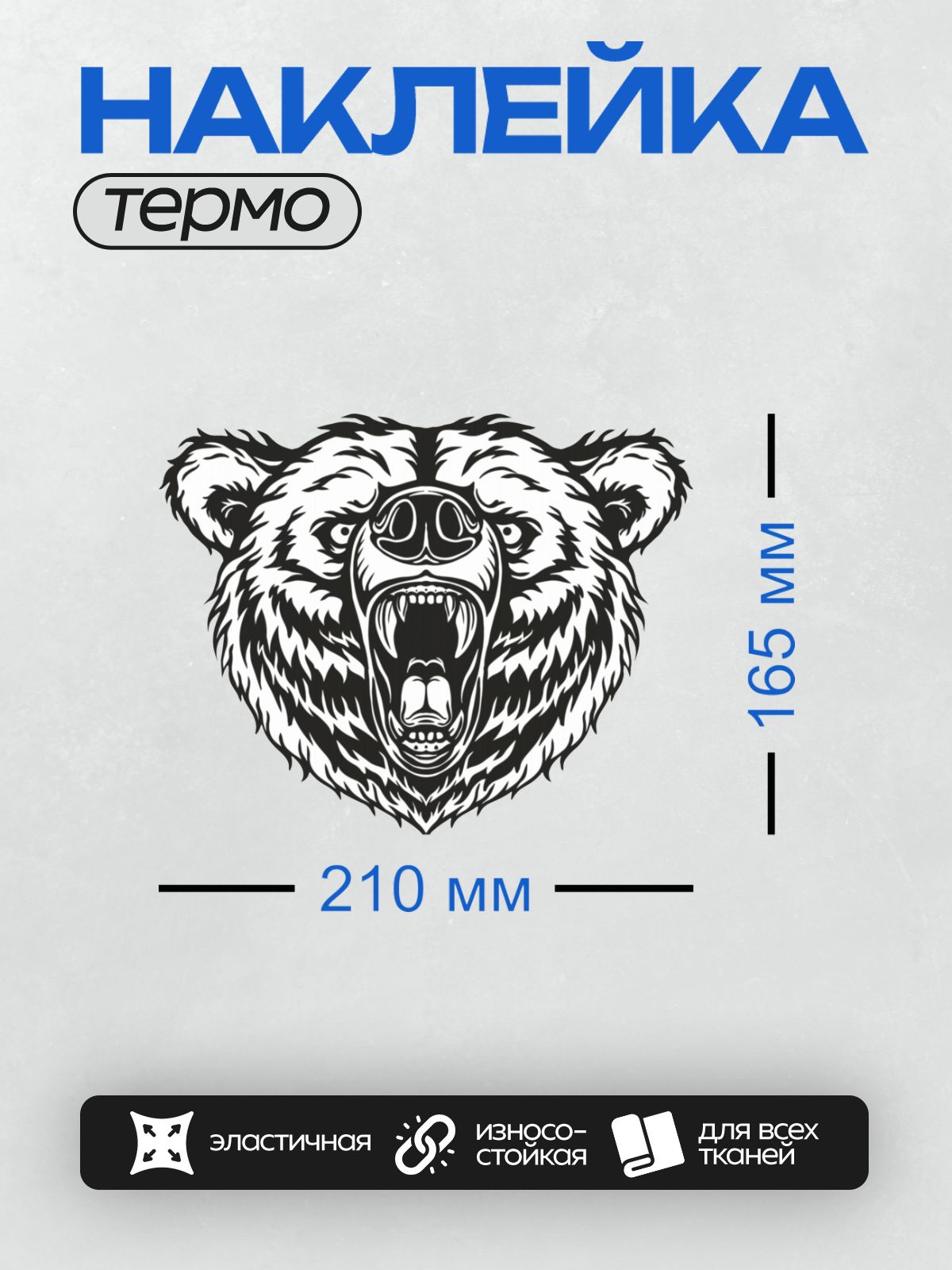 Термонаклейка на одежду DTF / Агрессивный оскал медведя в черно-белом стиле.