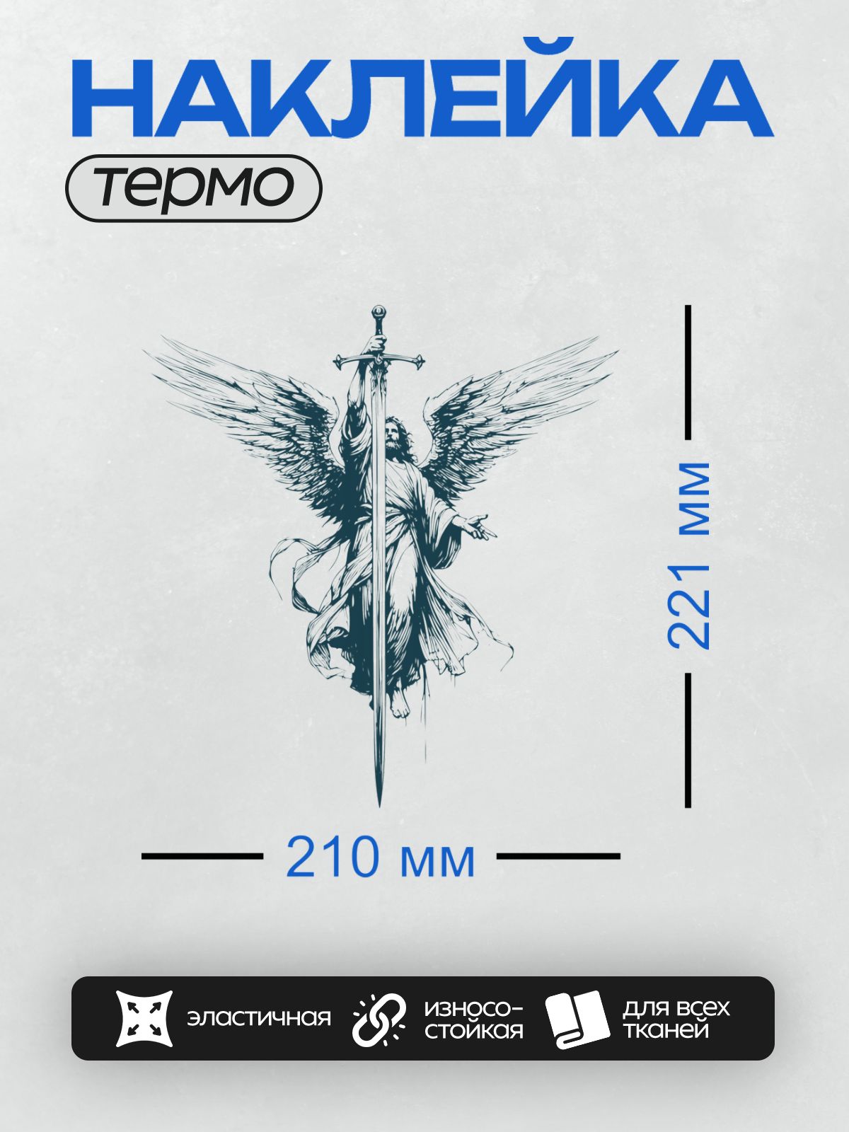 Дизайн: Ангел с крыльями держит меч, символизируя защиту и силу. — идеально подходит для декора и восстановления одежды.