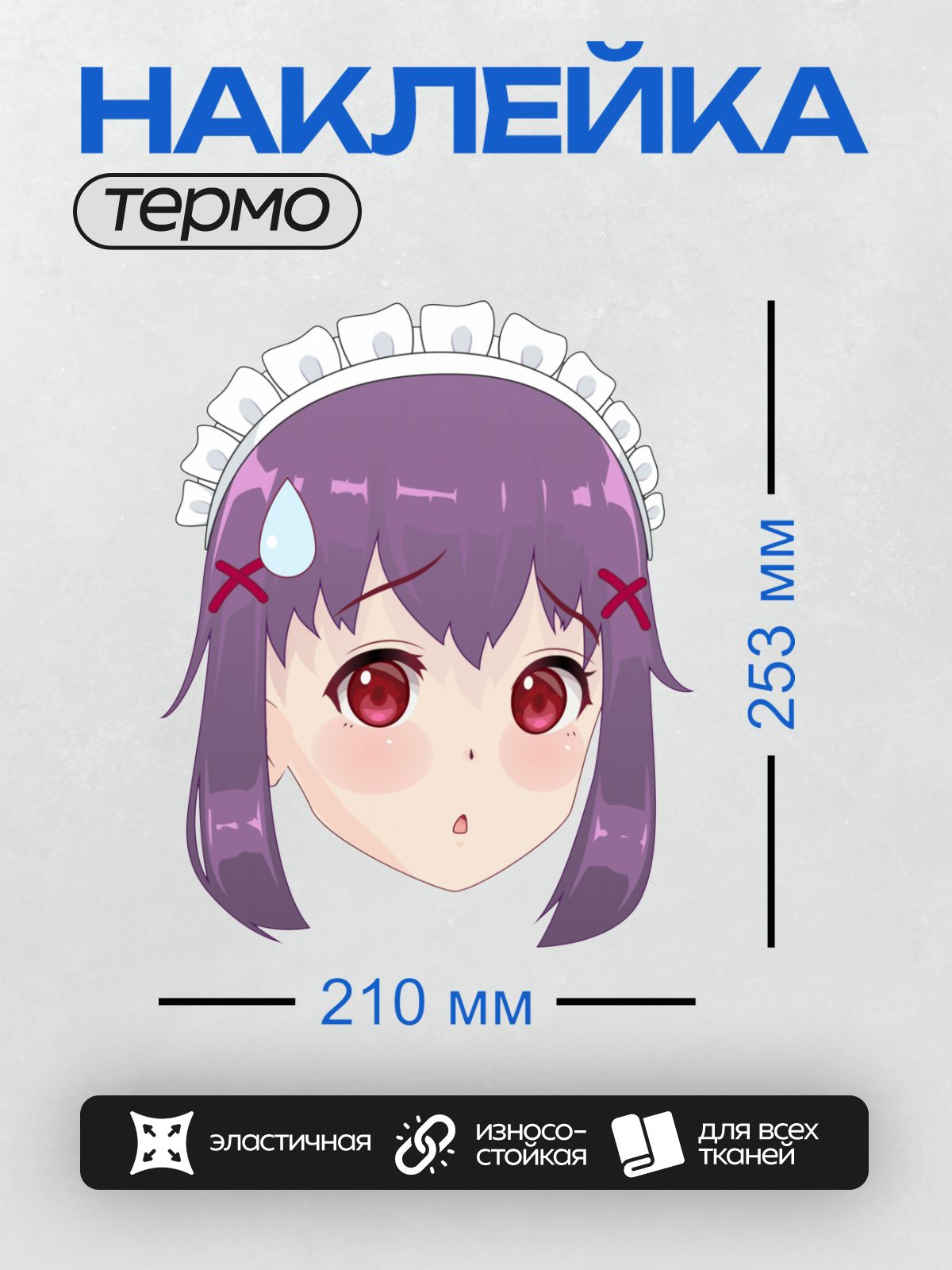 Термонаклейка на одежду DTF / Аниме-девушка с фиолетовыми волосами, красными глазами, каплей пота и красными крестами на лбу.