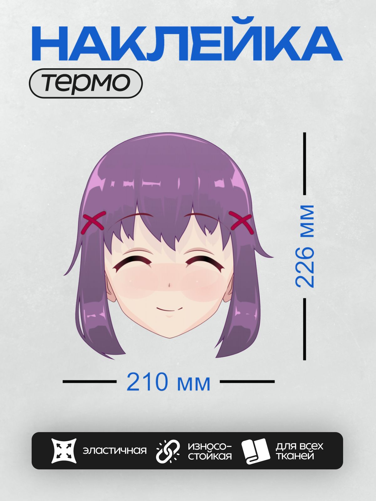 Термонаклейка на одежду DTF / Аниме-девушка с фиолетовыми волосами и красными крестиками на лбу.