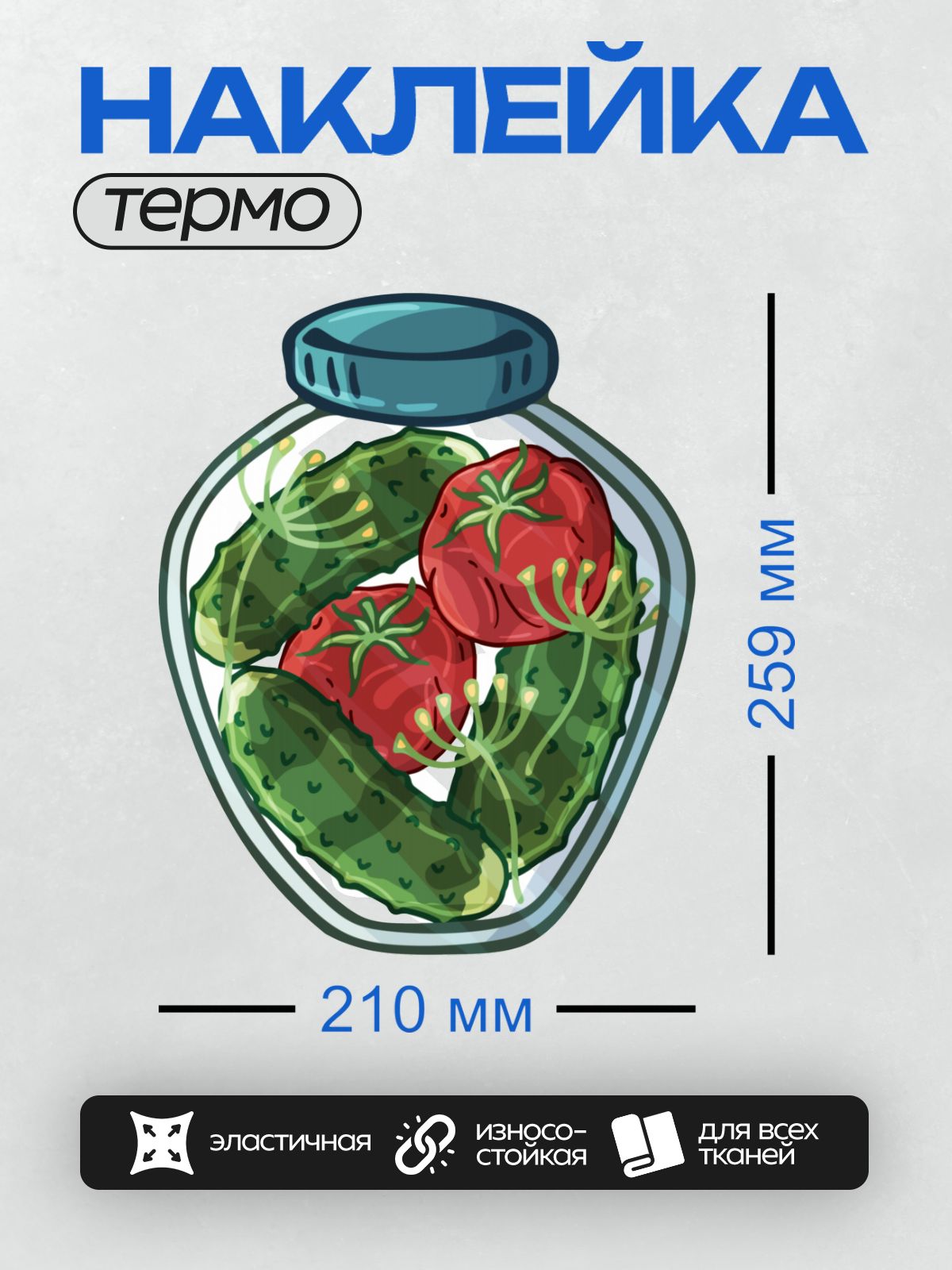 Термонаклейка на одежду DTF / Банка с маринованными огурцами и помидорами.