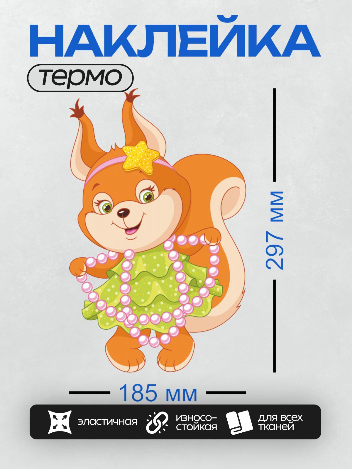Дизайн: Белка в зелёном платье с бусами и звездой на голове. — идеально подходит для декора и восстановления одежды.