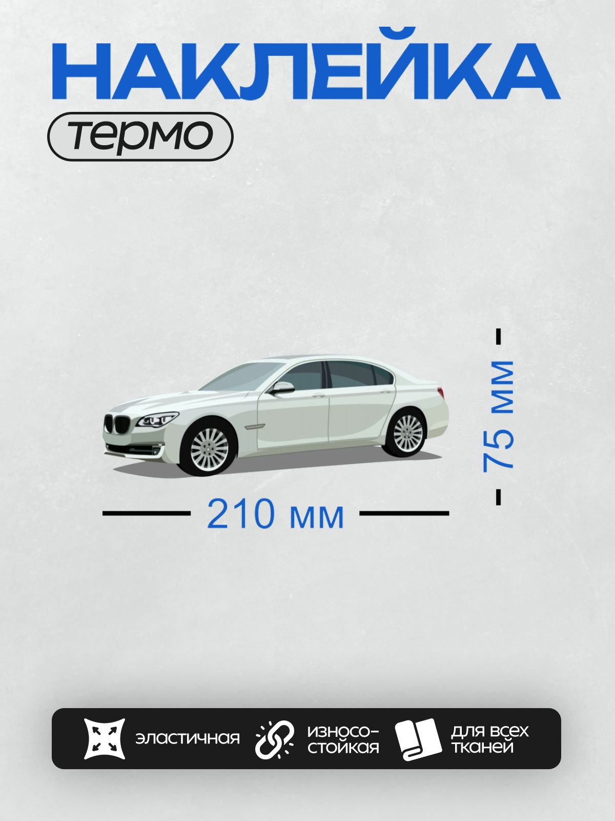 Дизайн: Белый автомобиль BMW 7 серии, вид сбоку. — идеально подходит для декора и восстановления одежды.