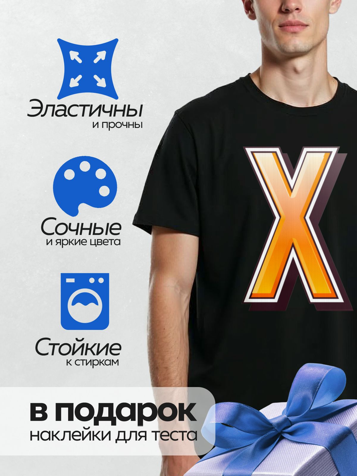 Дизайн: Буква “X” с градиентом от оранжевого к жёлтому, объёмный эффект. — идеально подходит для декора и восстановления одежды.