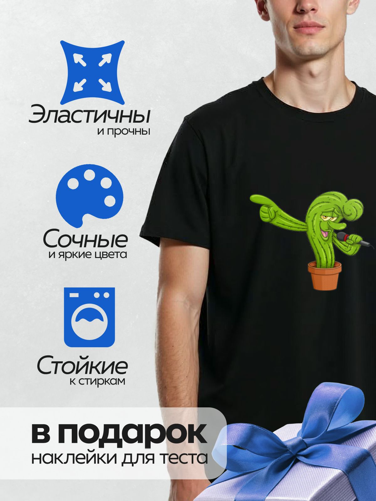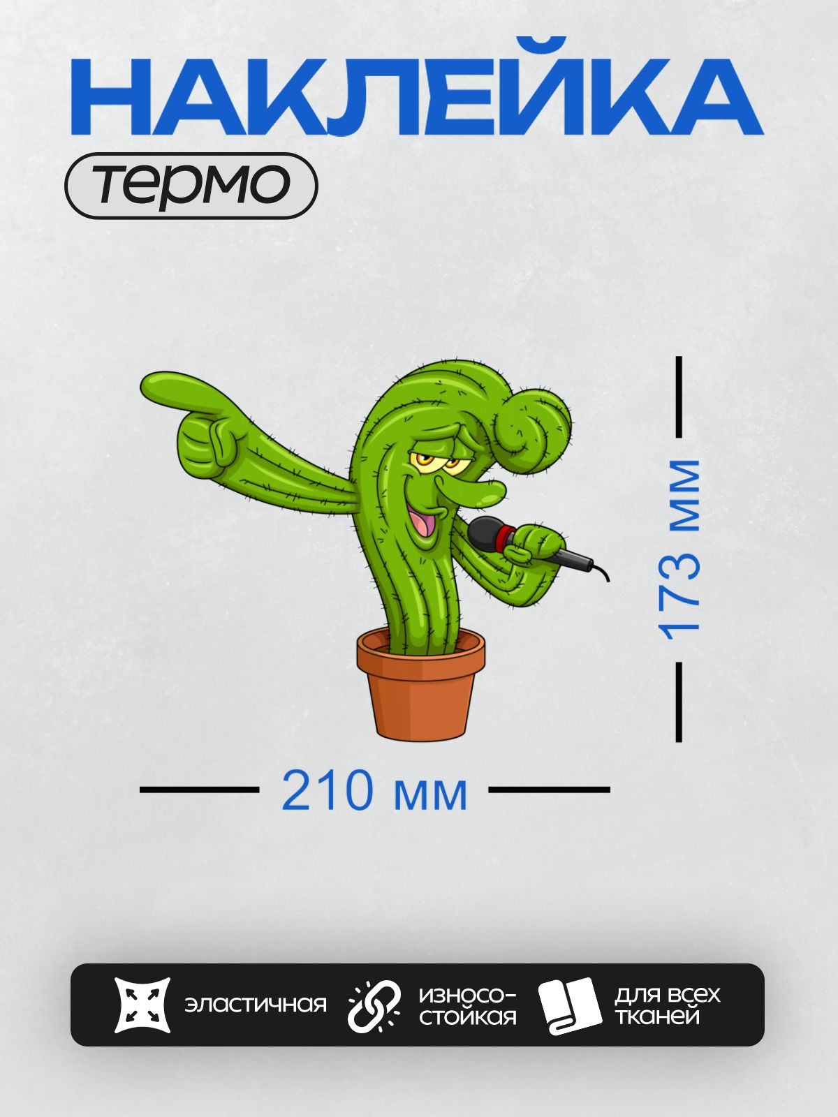 Дизайн: Весёлый мультяшный кактус с микрофоном в горшке. — идеально подходит для декора и восстановления одежды.