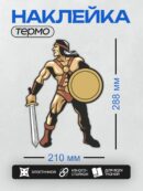 Дизайн: Воин с мечом и щитом в боевой позе. — идеально подходит для декора и восстановления одежды.