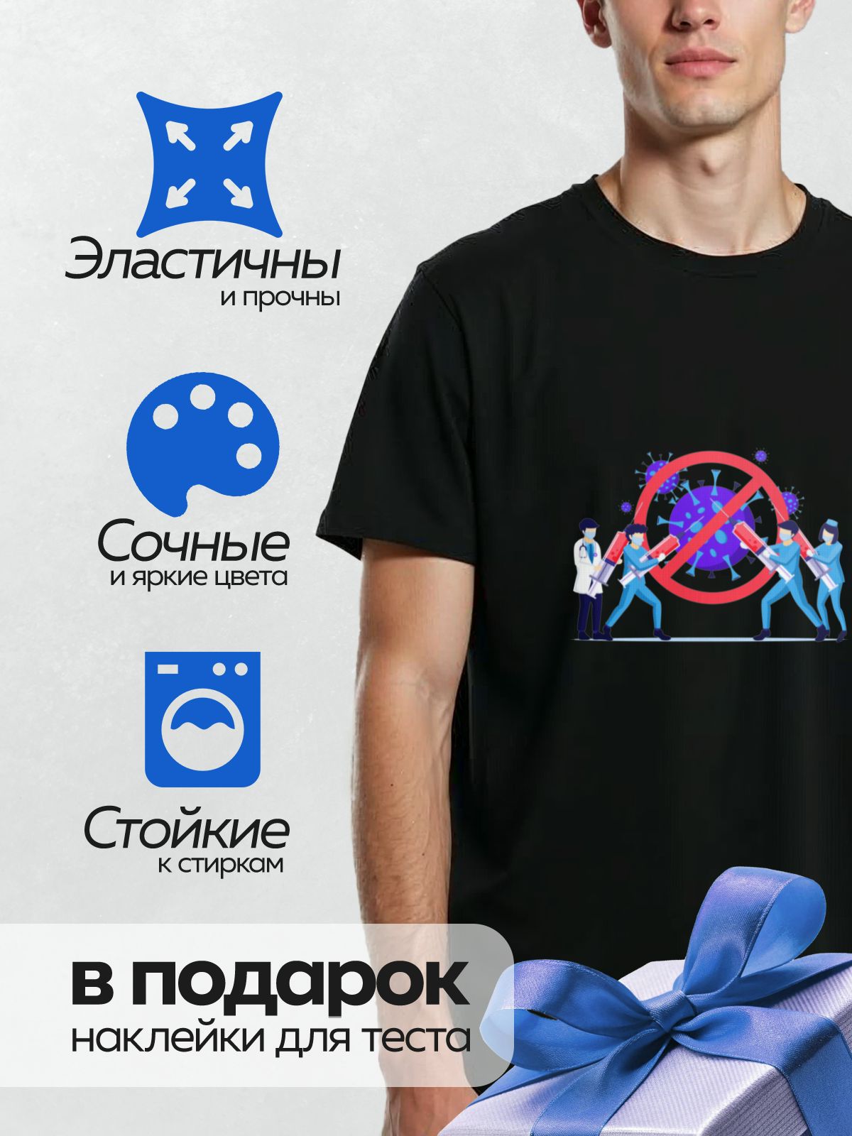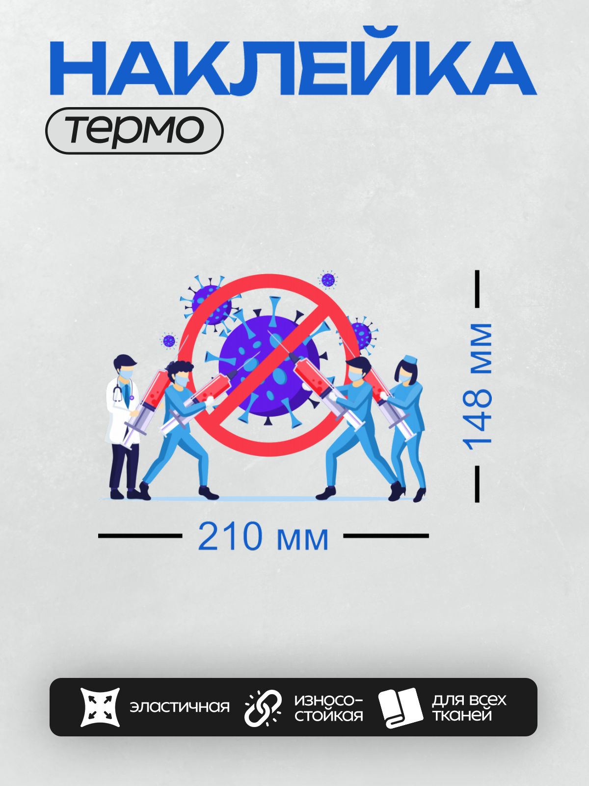 Термонаклейка на одежду DTF / Врачи с большими шприцами борются с коронавирусом.