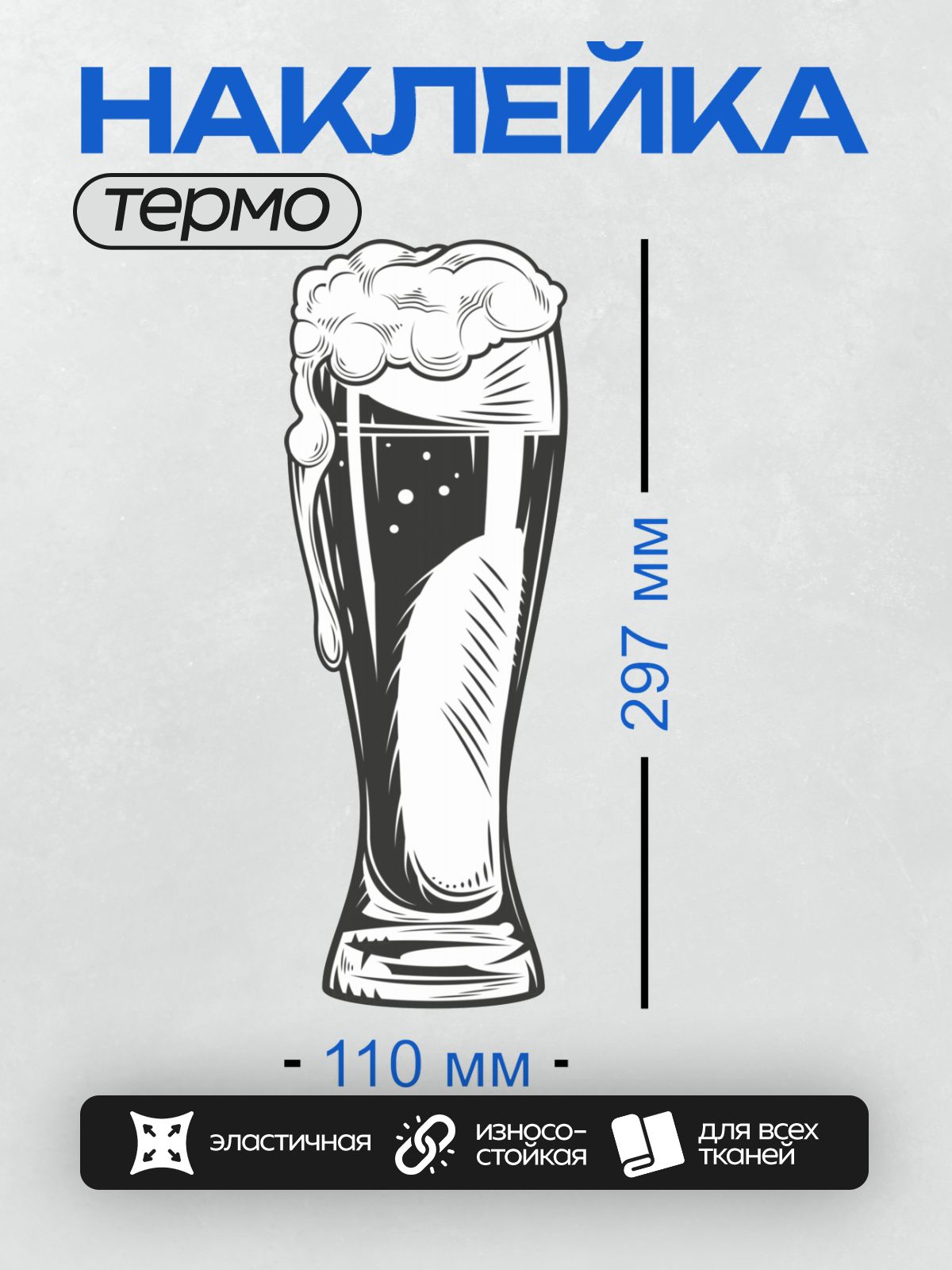 Термонаклейка на одежду DTF / Высокий бокал с пивом и пышной пеной, векторная иллюстрация.