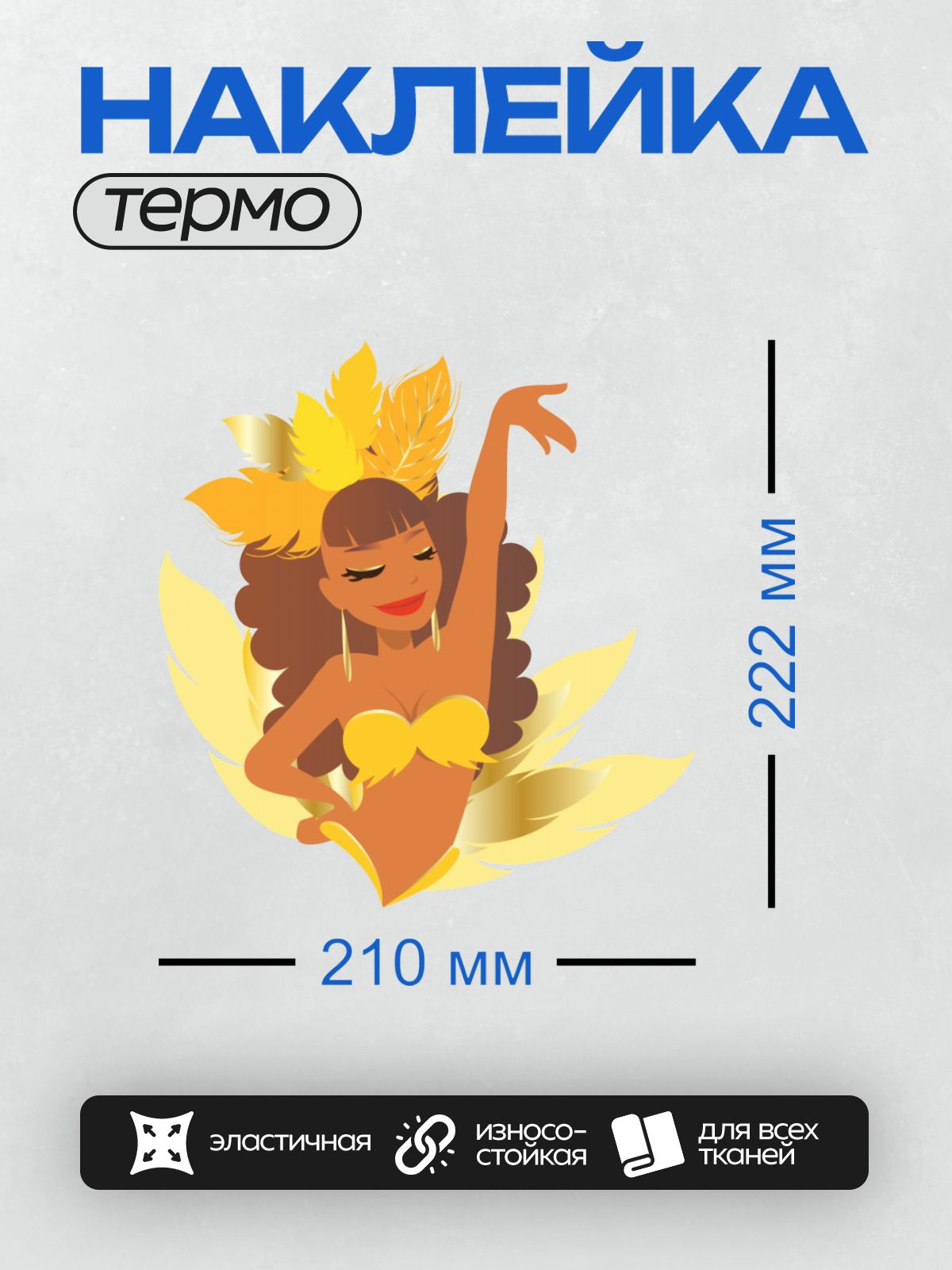 Дизайн: Гавайская танцовщица в ярком костюме и с украшением из перьев на голове. — идеально подходит для декора и восстановления одежды.