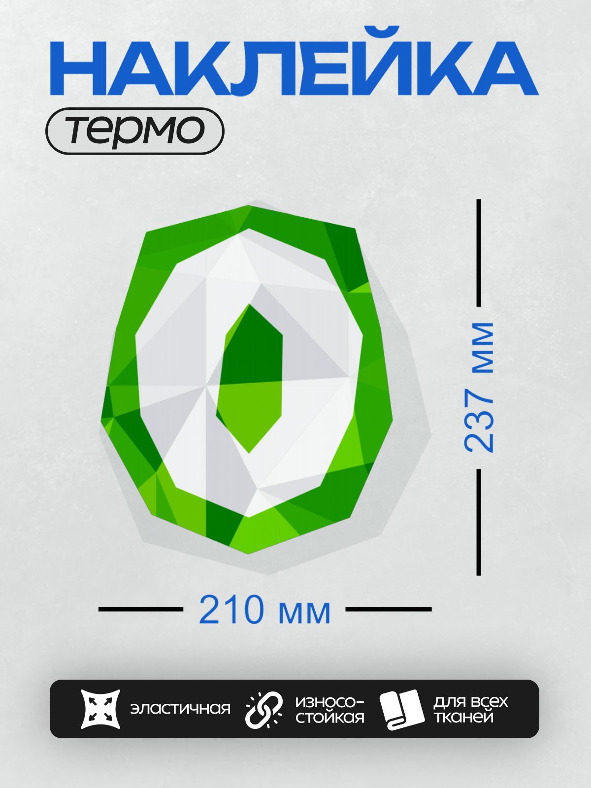 Дизайн: Геометрический узор в виде зелёного драгоценного камня. — идеально подходит для декора и восстановления одежды.