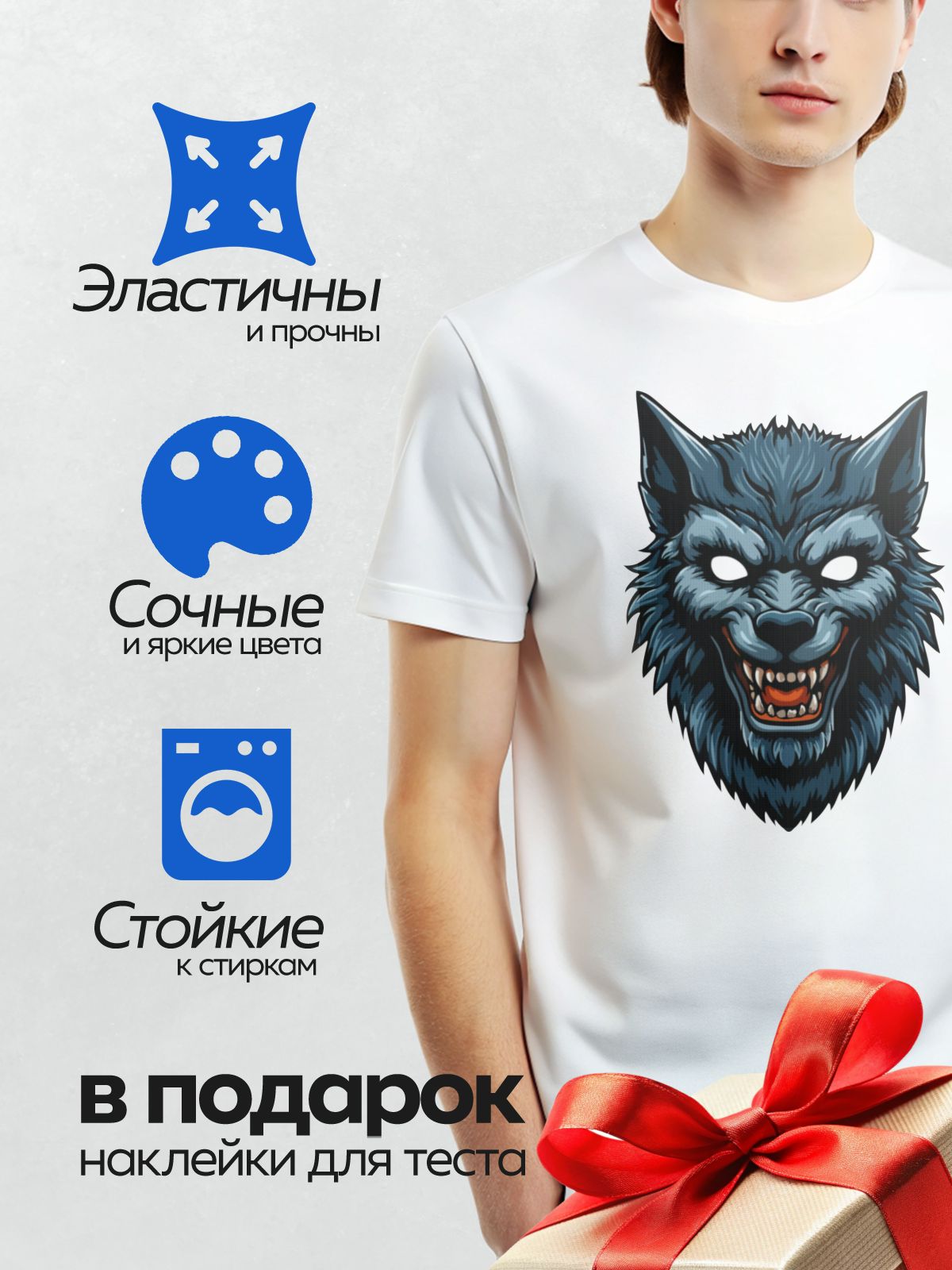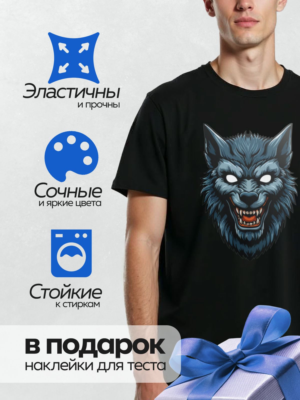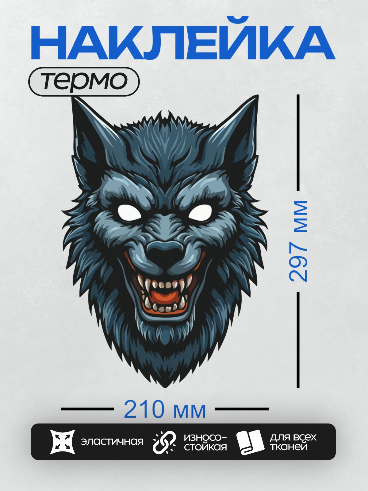 Дизайн: Голова волка с оскалом и белыми глазами. — идеально подходит для декора и восстановления одежды.