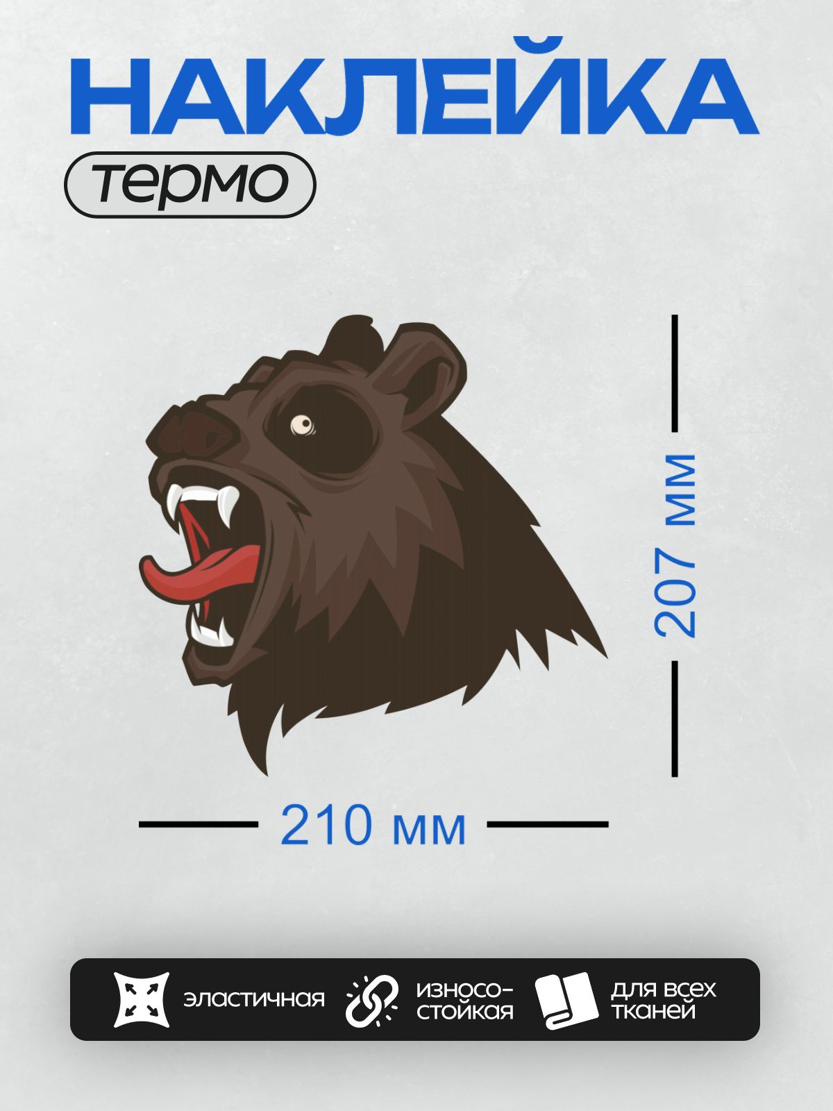Термонаклейка на одежду DTF / Голова медведя с открытым ртом, рычит.