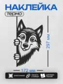 Термонаклейка на одежду DTF / Голова мультяшного волка выглядывает из-за линии.