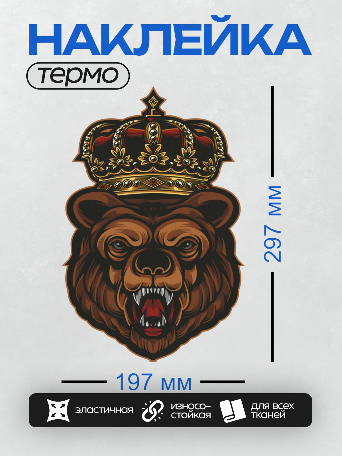 Дизайн: Грозный медведь в золотой короне. — идеально подходит для декора и восстановления одежды.