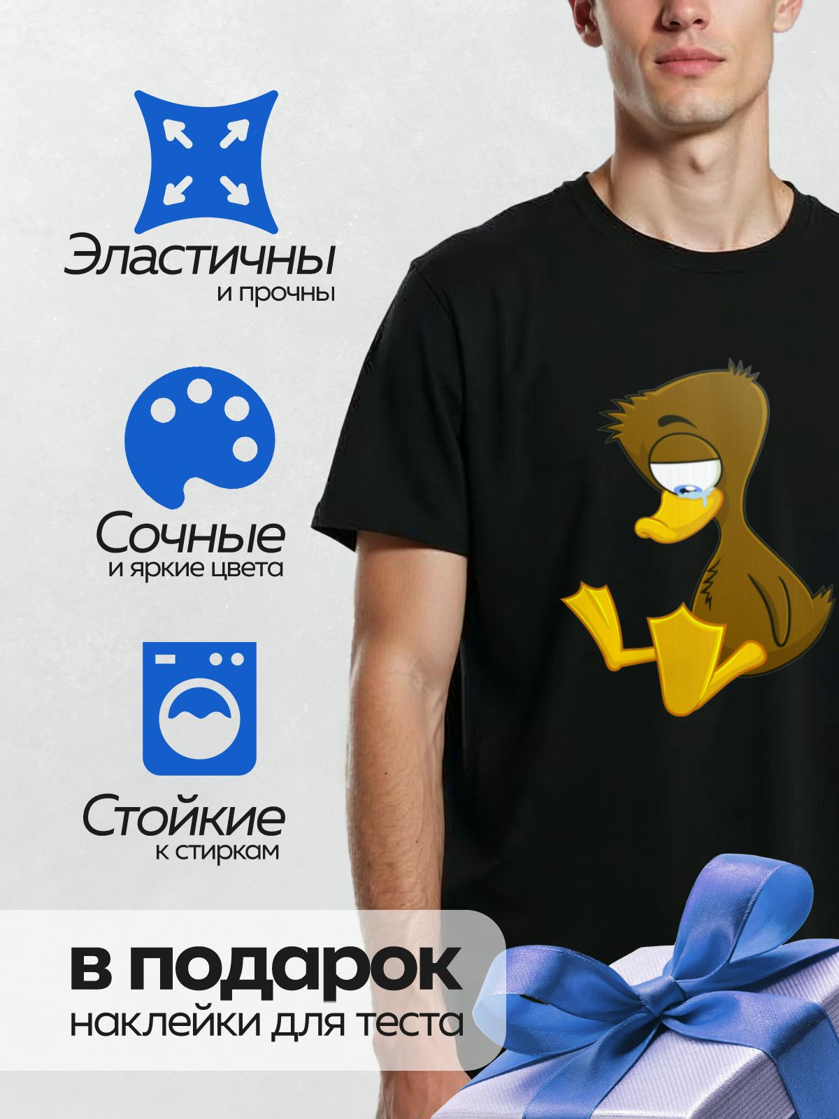 Термонаклейка на одежду DTF / Грустный мультяшный утёнок с опущенной головой.