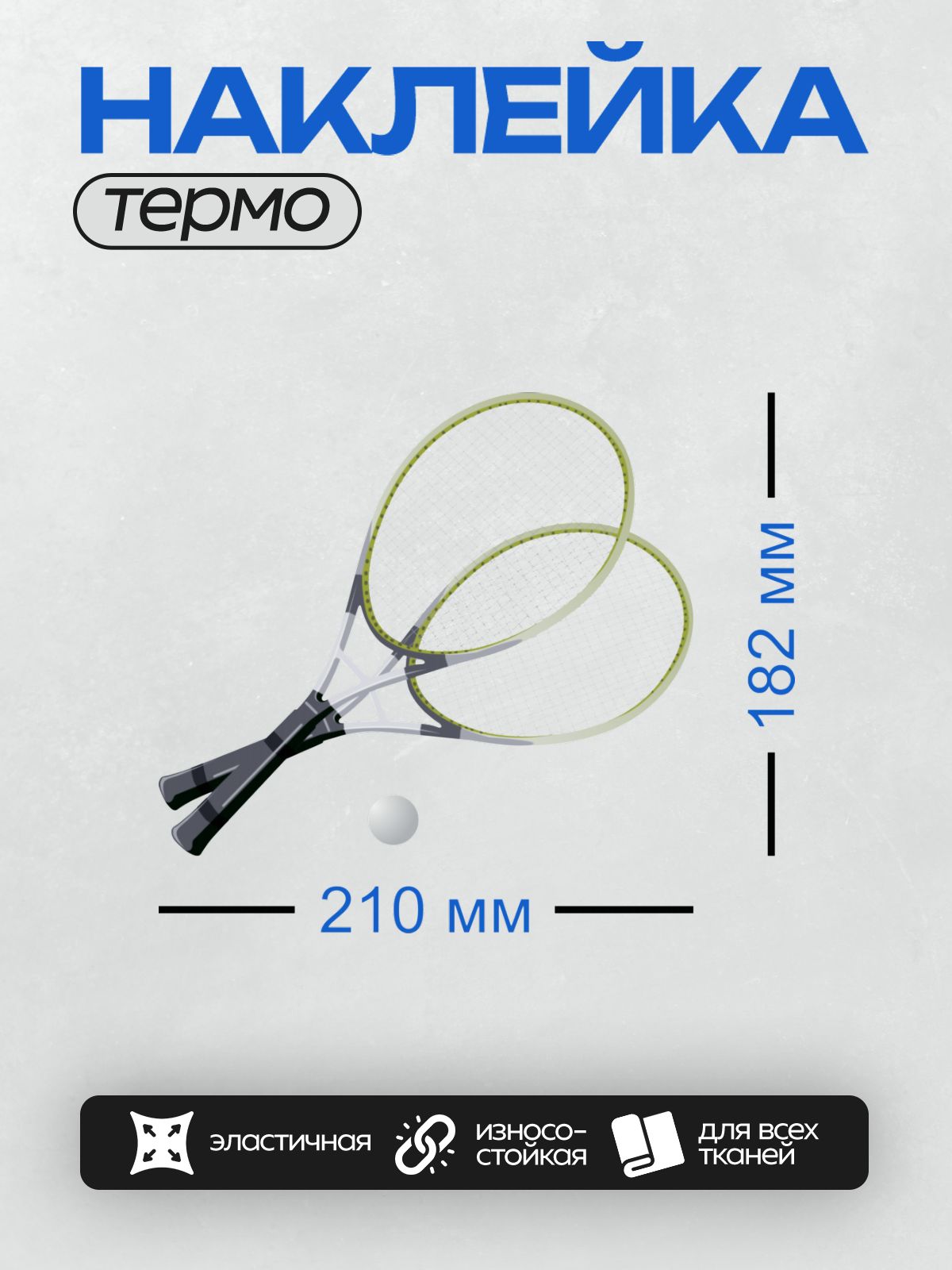 Термонаклейка на одежду DTF / Две теннисные ракетки и мяч на белом фоне.