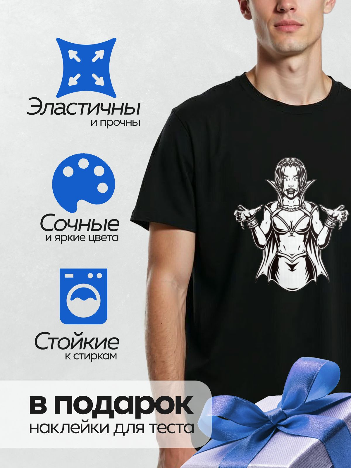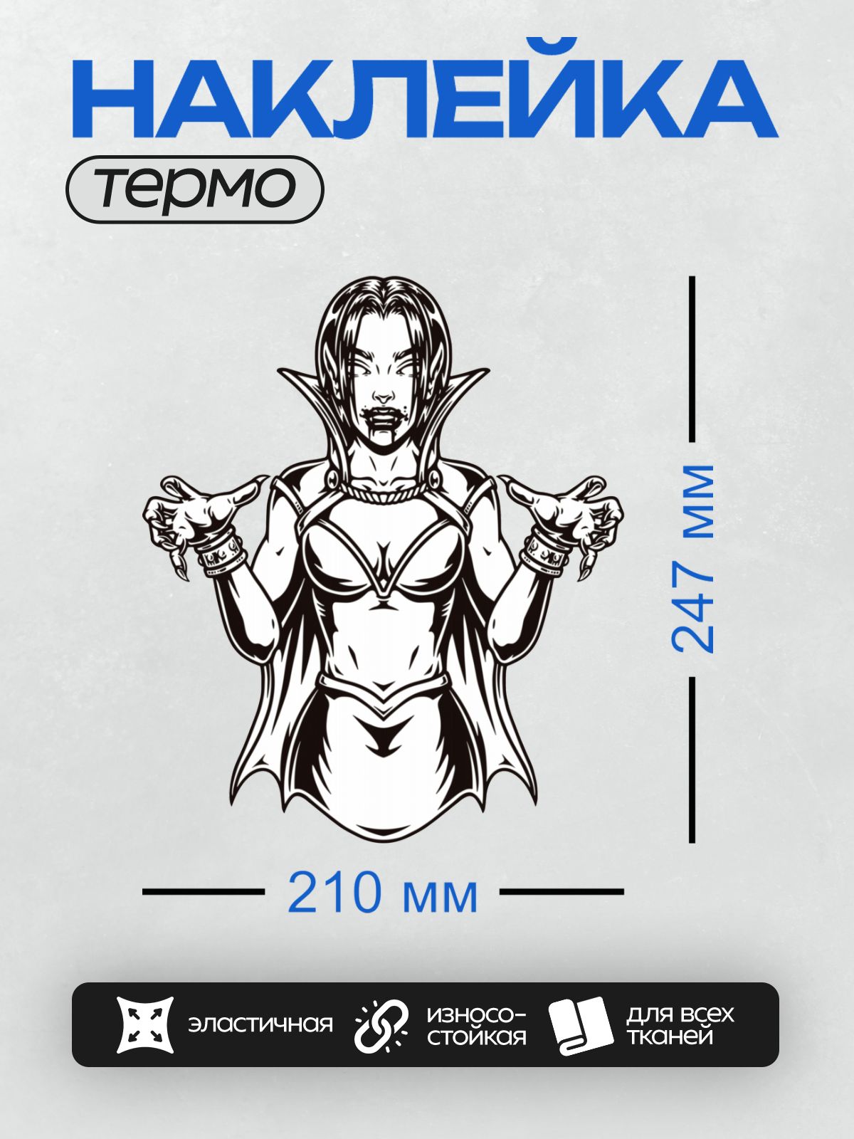 Термонаклейка на одежду DTF / Девушка-вампир с клыками и плащом, стилизованный рисунок.
