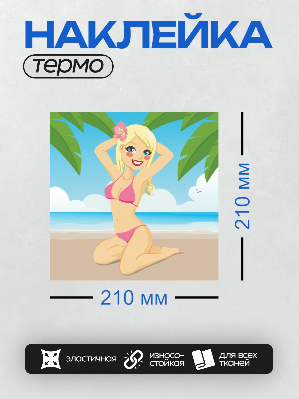 Дизайн: Девушка в розовом купальнике на пляже, пальмы. — идеально подходит для декора и восстановления одежды.
