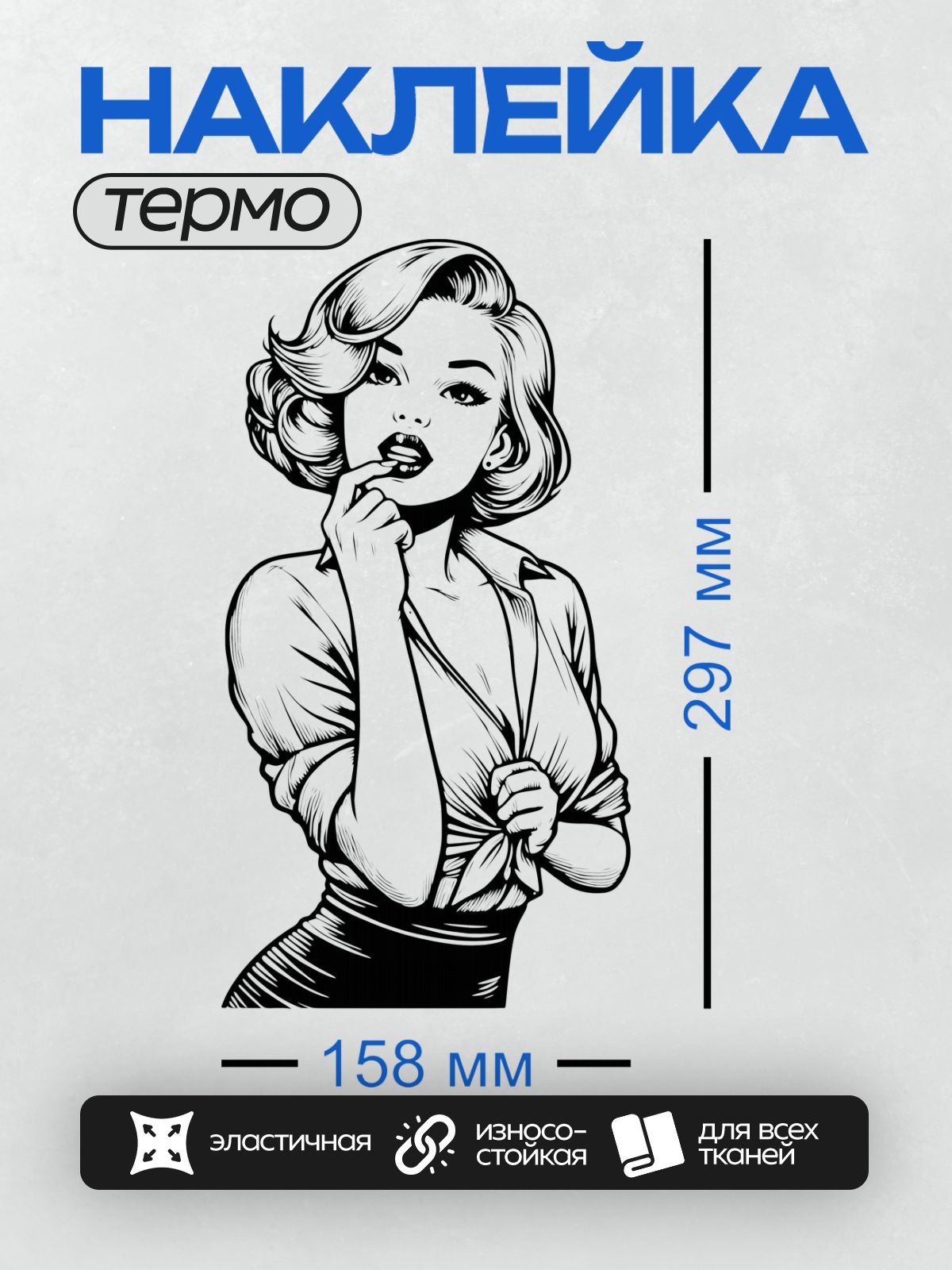 Термонаклейка на одежду DTF / Девушка в стиле пин-ап с волнистыми волосами и ярким макияжем.