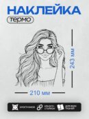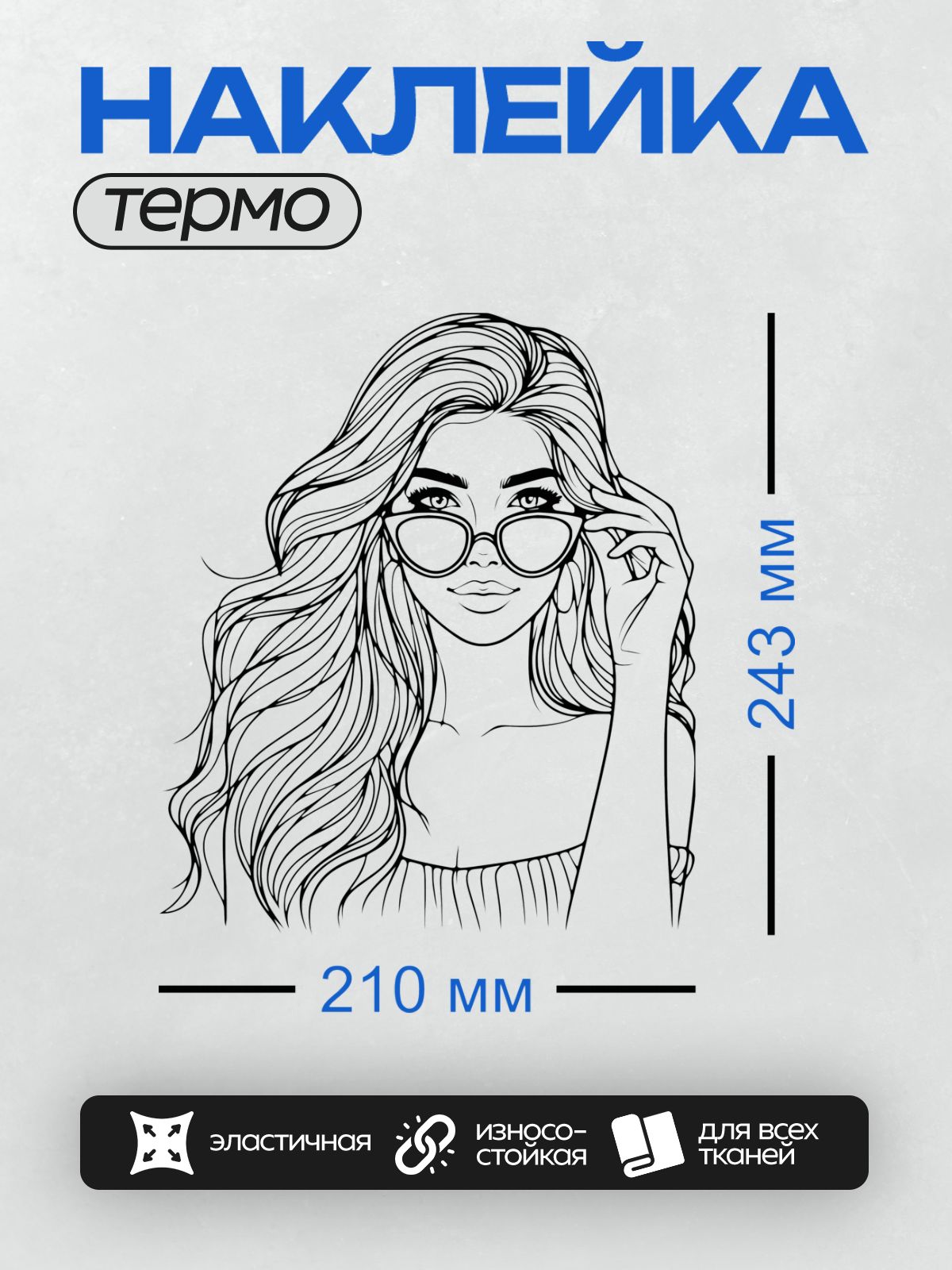 Термонаклейка на одежду DTF / Девушка с длинными волнистыми волосами, в очках, улыбается.
